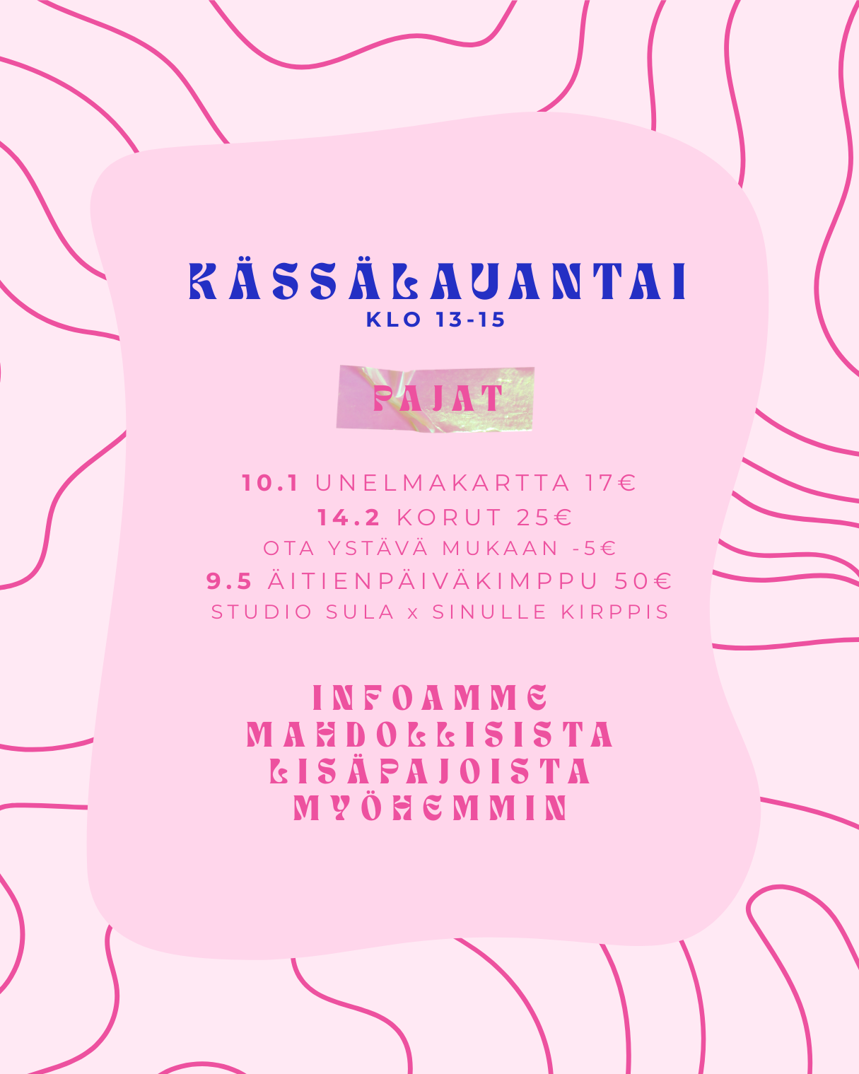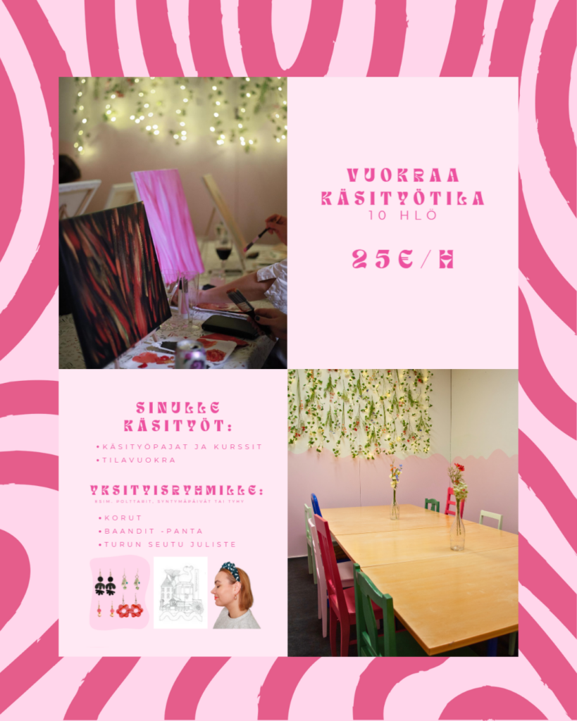 • Käsityötilan vuokraus 25 €/h.