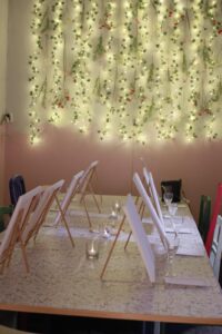 • Tilasta löytyy pöytä ja tuolit kymmenelle hengelle.