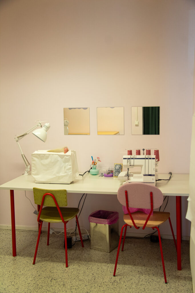 Sisältää saumurin, pöytäompelukoneen, langat, silitysrauta sekä ompeluvälineet. Ompelimoon mahtuu työskentelemään yksi henkilö kerrallaan ja ompelu tapahtuu omalla vastuulla. Maksimi vuokrausaika on 4 h. Varaa aika puhelimitse, sähköpostilla tai liikkeessä.